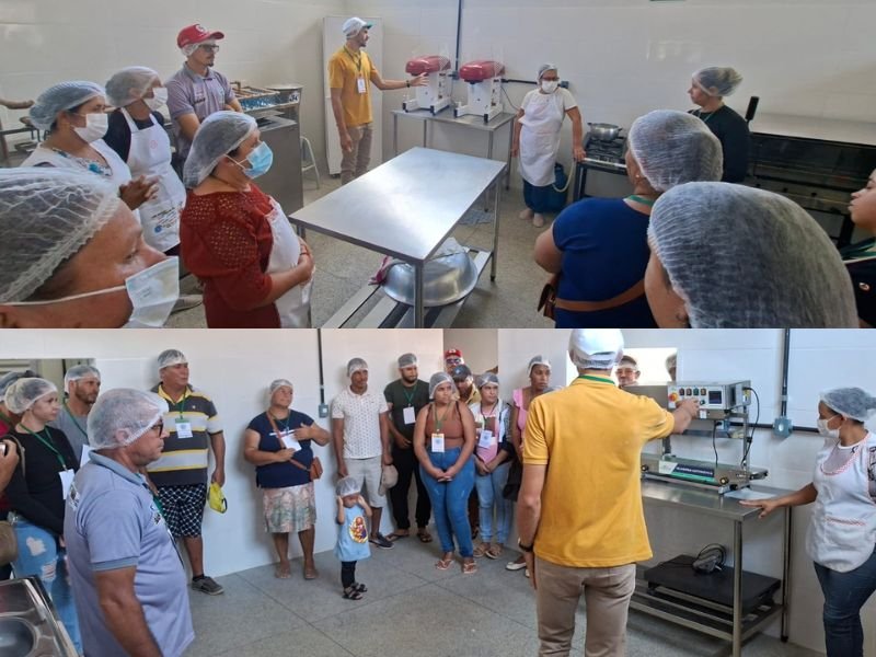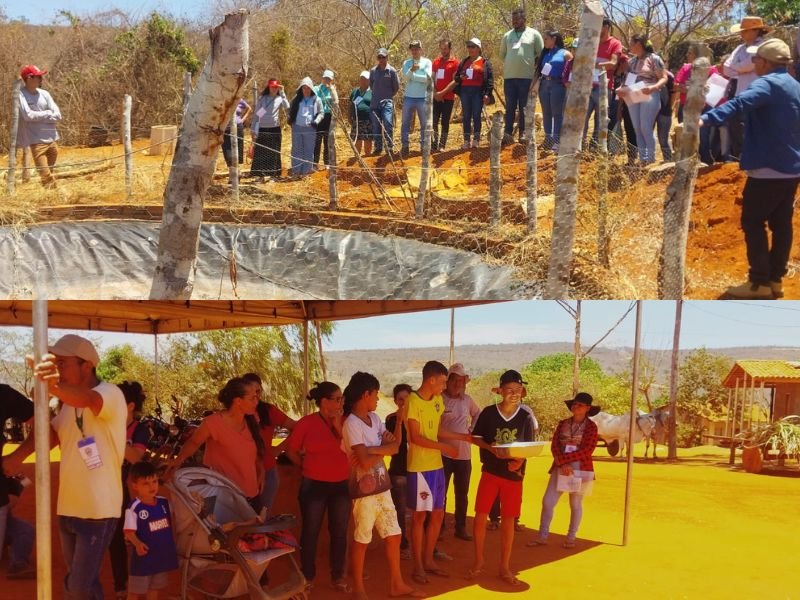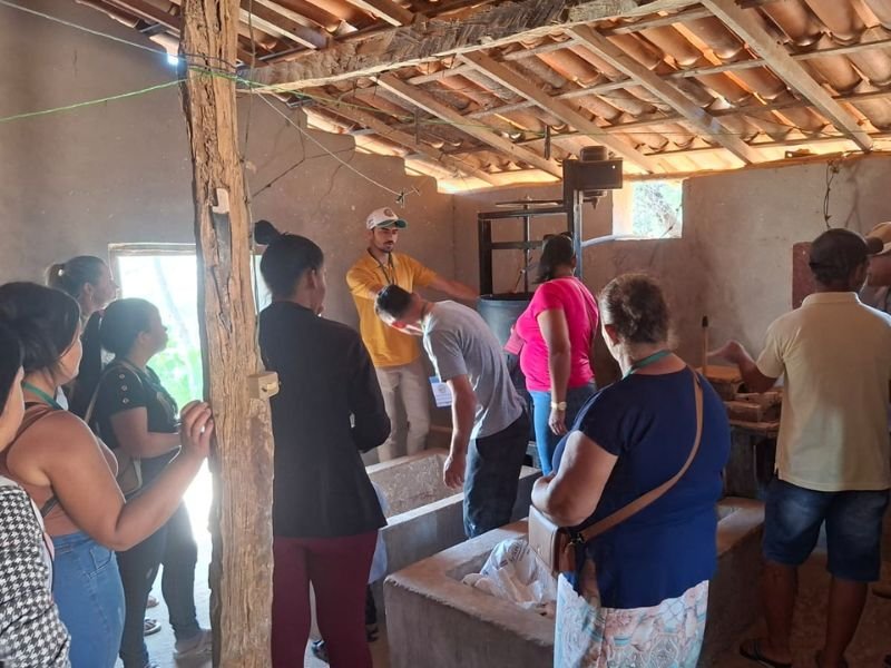 Os participantes visitaram a propriedade de Dona Maria Lima e de sua família, beneficiária dos Projetos ATER Biomas e Água para Produção de Alimentos, conhecendo de perto as mudanças na produção familiar, a partir da assistência técnica. O papel das tecnologias sociais; e as expectativas com a chegada da cisterna calçadão e do barreiro trincheira. No final da manhã, o grupo conheceu a Casa de Farinha da Sra. Maria Celina, símbolo da tradição local na produção de farinha e derivados da mandioca.