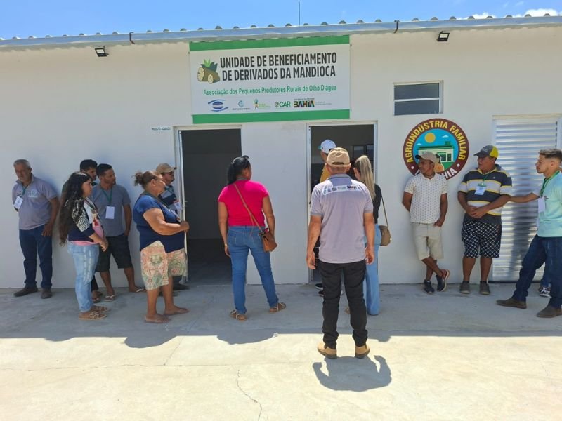 O primeiro dia do intercâmbio, aconteceu na Unidade de Beneficiamento de Derivados da Mandioca, comunidade de Olho D’Água – Rio do Antônio. Após acolhimento e café comunitário, os participantes conheceram a experiência da agroindústria, fruto da organização coletiva e do trabalho cooperado das famílias. Durante a visita guiada, conversamos sobre a gestão e comercialização dos produtos, que são vendidos em feiras e mercados locais; sobre a conquista do selo da agroindústria; o papel das mulheres na produção; e as estratégias de fortalecimento da renda no meio rural.