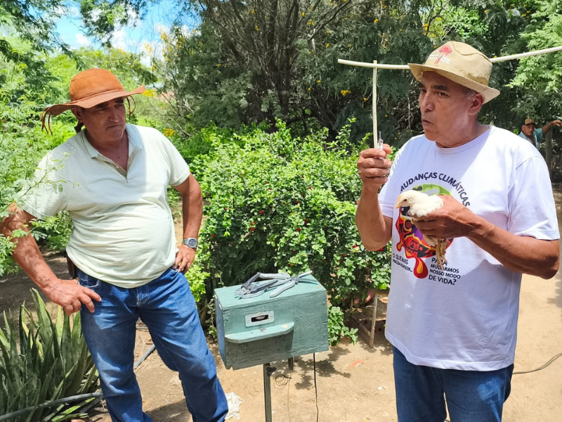 Os agricultores José Lima e Antônio Lima emocionaram os participantes ao compartilhar suas experiências na criação de galinhas, mostrando que o conhecimento do campo também nasce da prática, da observação e da criatividade.